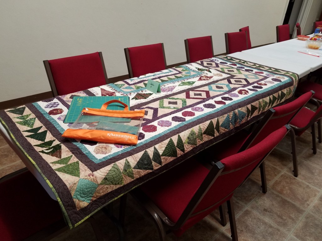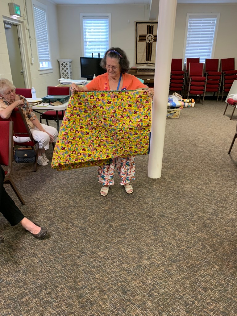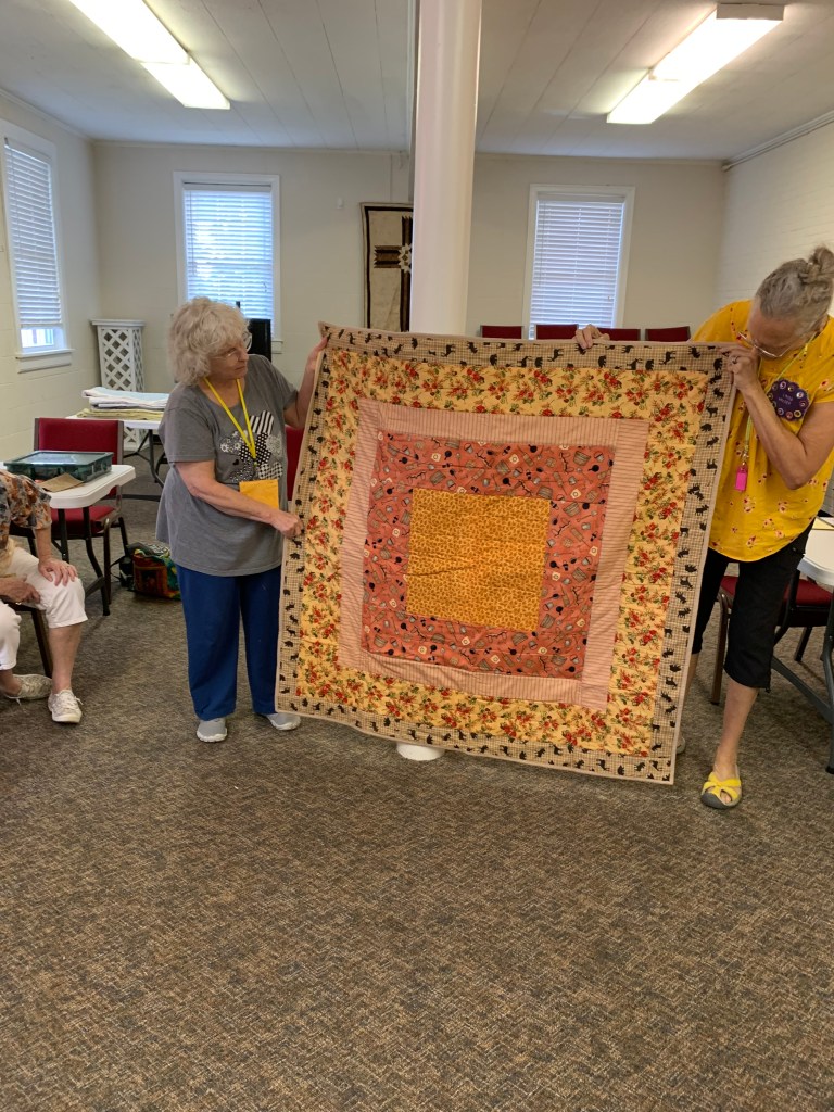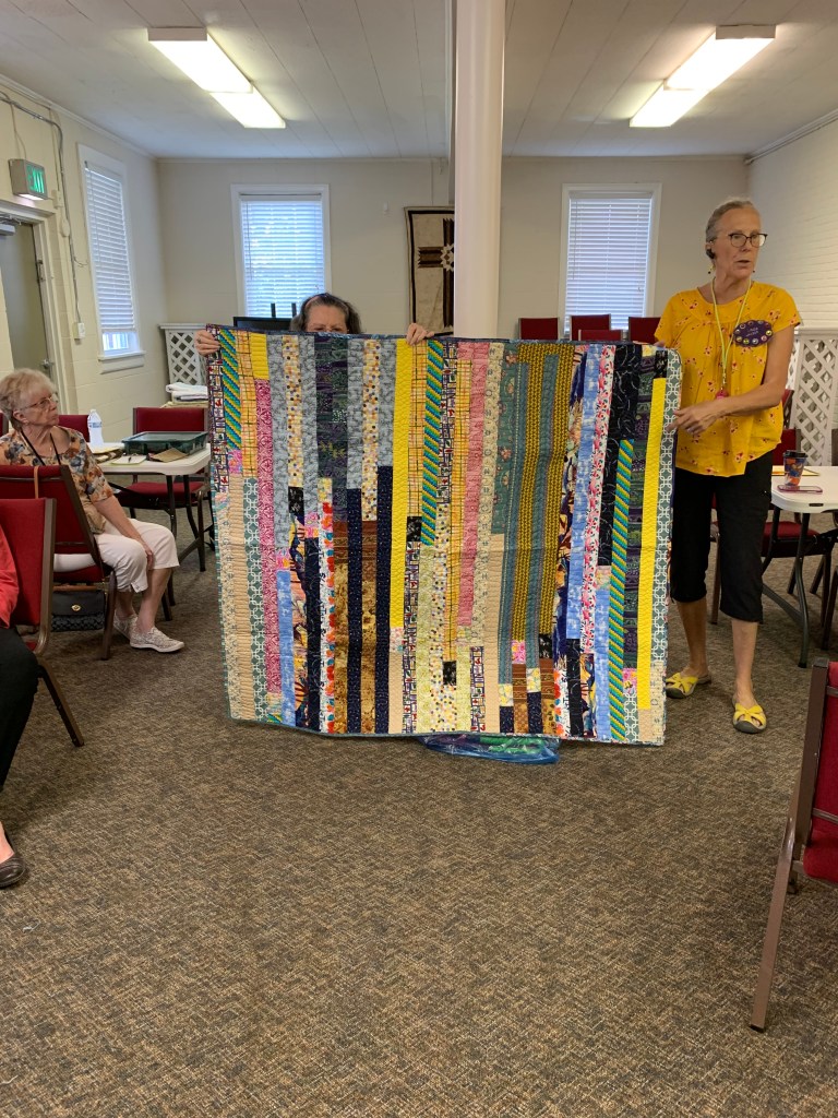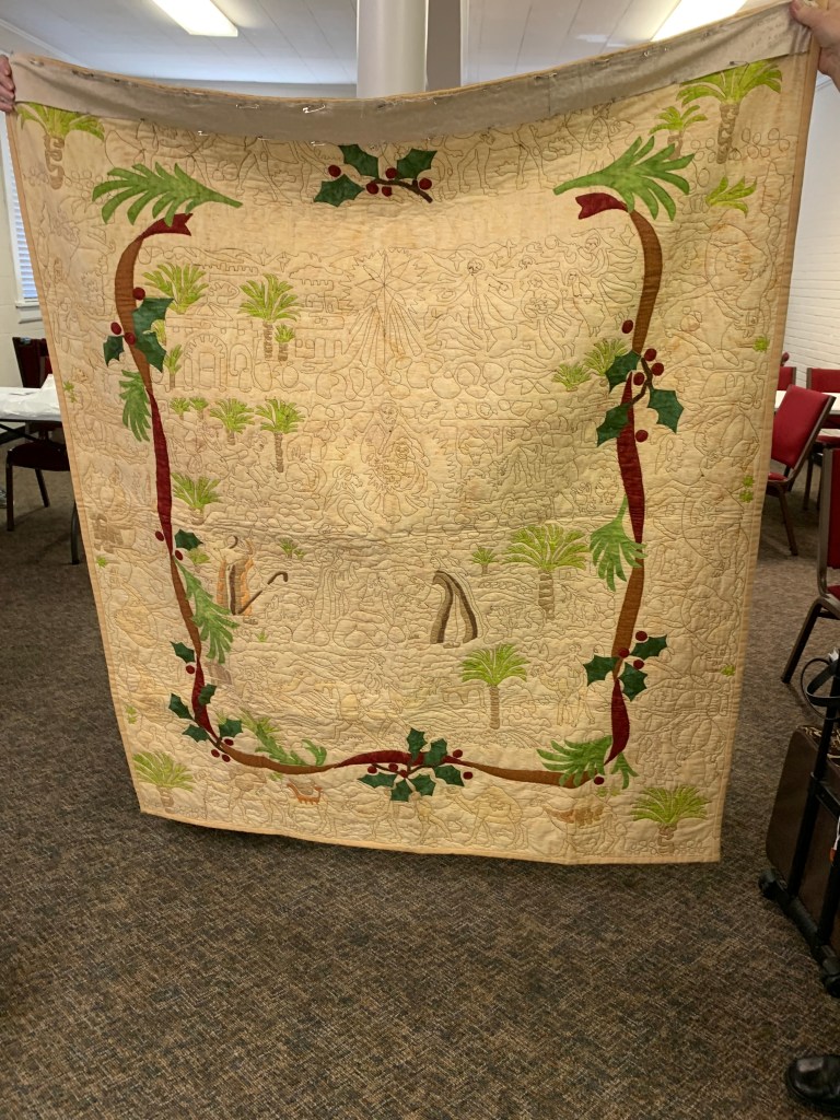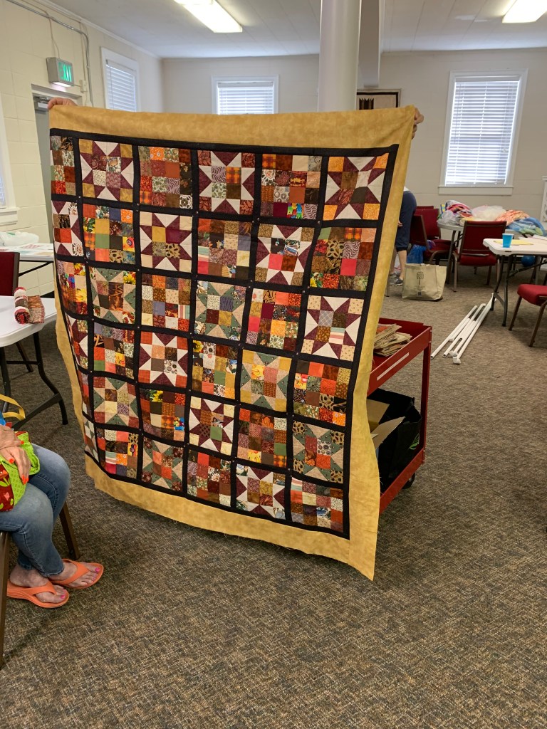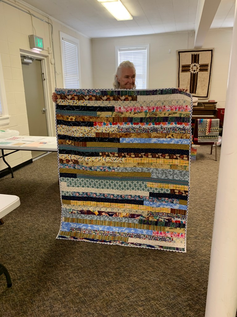 The doors are open at 9AM and we appreciate folks coming then and helping set up. The morning workshop “Mini-class” on Basic Binding techniques starts promptly at 10 AM. I am preparing some small mug rugs for you to complete the binding on after I demonstrate. So far 10 people have signed up. When we finish we will join the others in our sewing morning. Please EVERYONE bring your machine and usual sewing supplies. For the class please bring some clips for the binding if you have them, and some to loan for those who don’t. Also a glue stick will come in handy, and I have also used 1/4″ fusible tape to attach the back of a binding – so bring some if you have it.. A 1/4″ foot for your machine will be best to use if you have it but not critical. The rest of you will be working on finishing stages of donation quilts, and/or making and filling one yard bags. We plan to donate to a shelter in Columbus and to the Crisis Center in Phenix City at our January meeting.