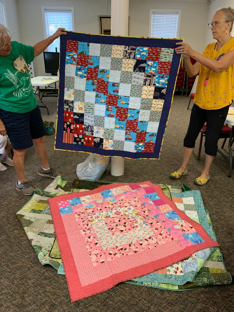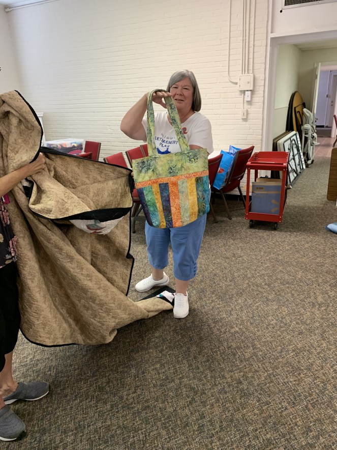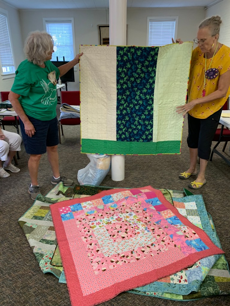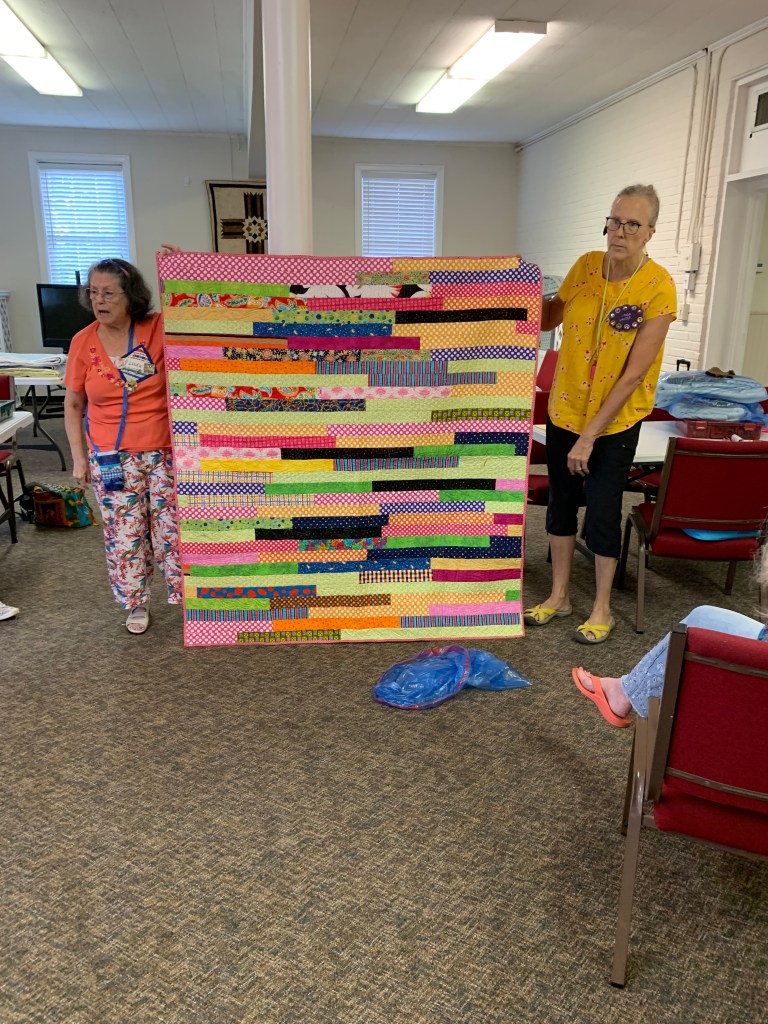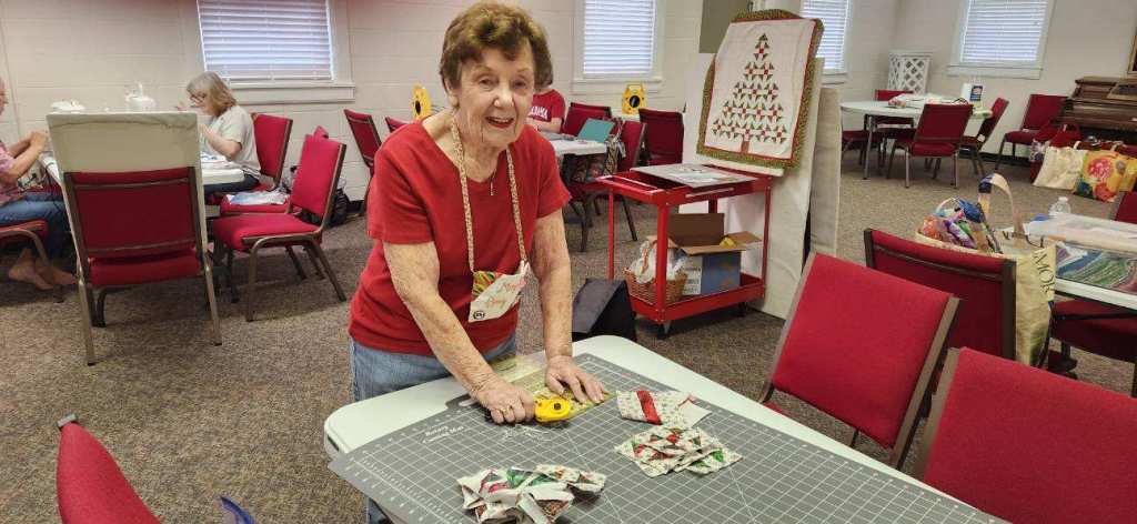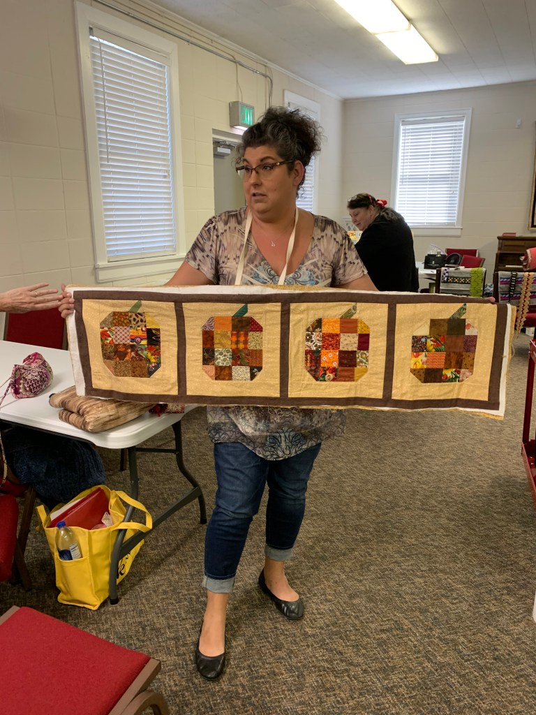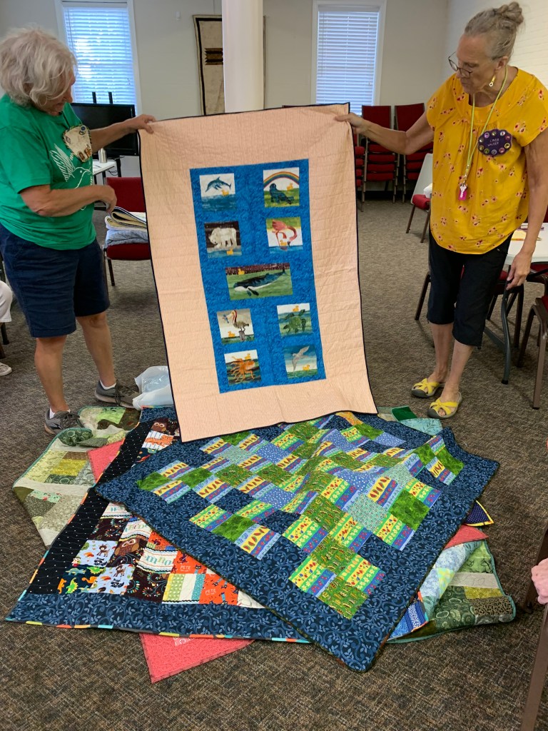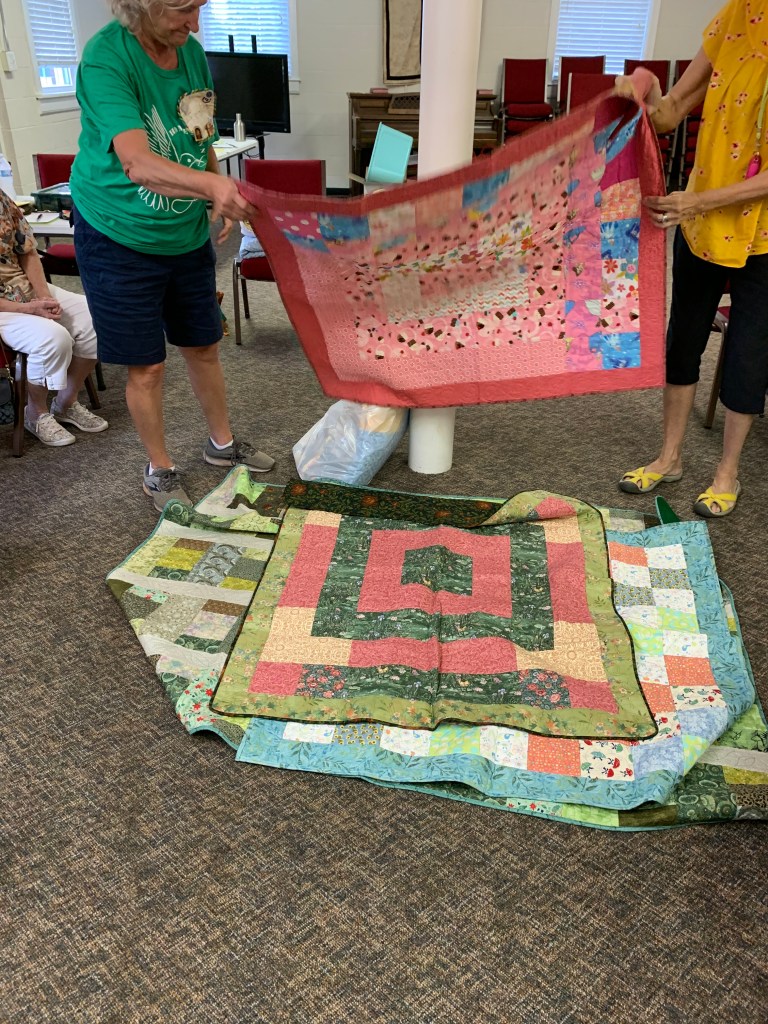 The doors are open at 9AM and we appreciate folks coming then and helping set up. The morning workshop “Mini-class” on Basic Binding techniques starts promptly at 10 AM. I am preparing some small mug rugs for you to complete the binding on after I demonstrate. So far 10 people have signed up. When we finish we will join the others in our sewing morning. Please EVERYONE bring your machine and usual sewing supplies. For the class please bring some clips for the binding if you have them, and some to loan for those who don’t. Also a glue stick will come in handy, and I have also used 1/4″ fusible tape to attach the back of a binding – so bring some if you have it.. A 1/4″ foot for your machine will be best to use if you have it but not critical. The rest of you will be working on finishing stages of donation quilts, and/or making and filling one yard bags. We plan to donate to a shelter in Columbus and to the Crisis Center in Phenix City at our January meeting.