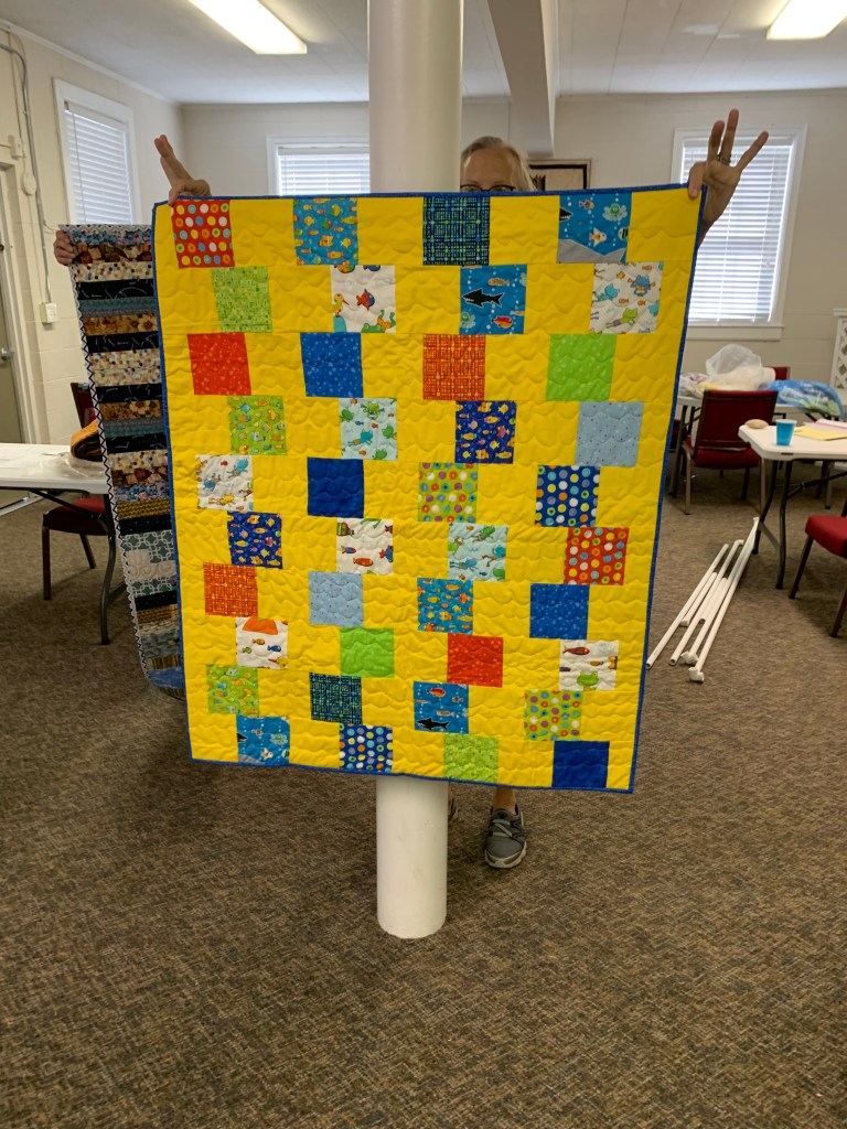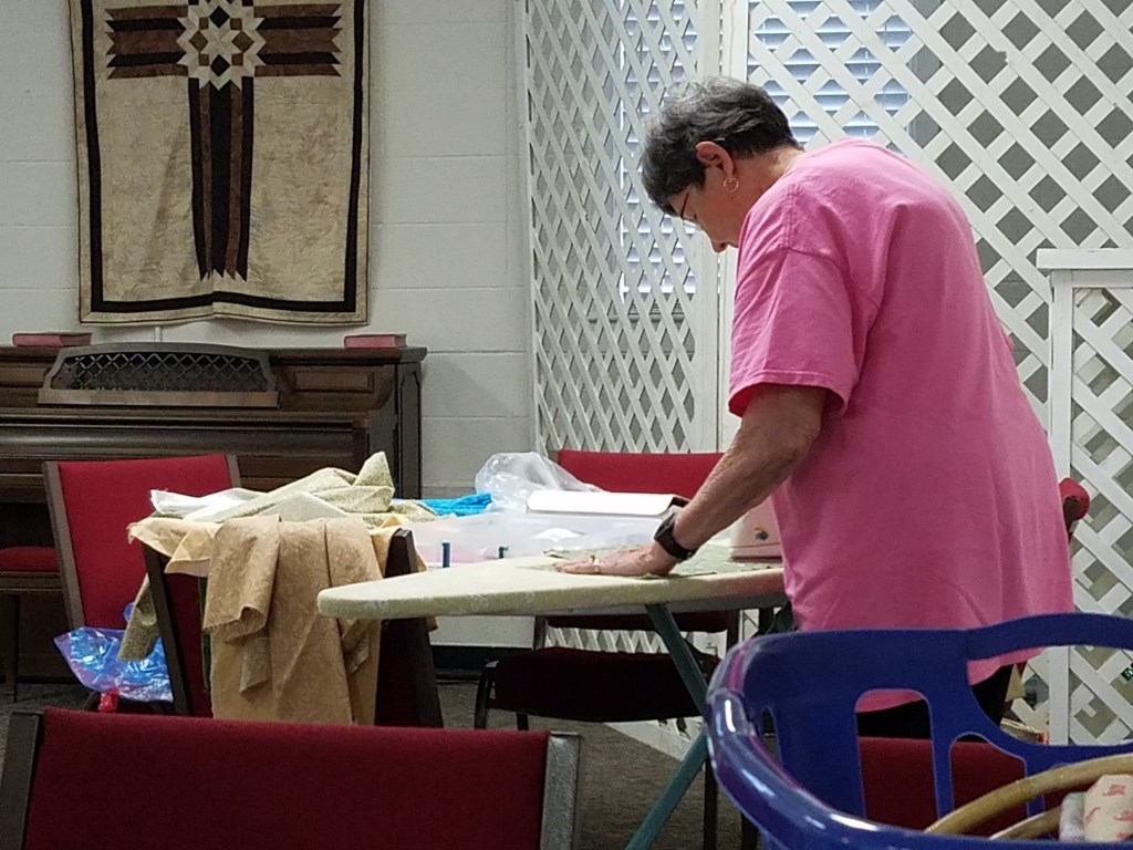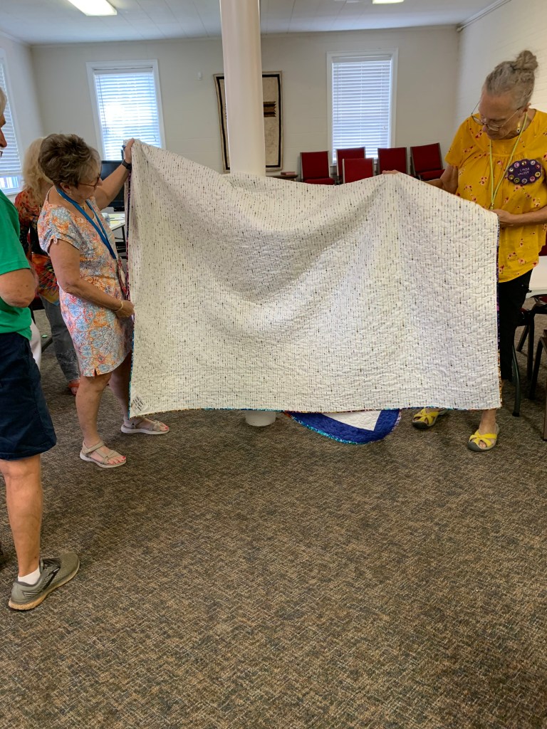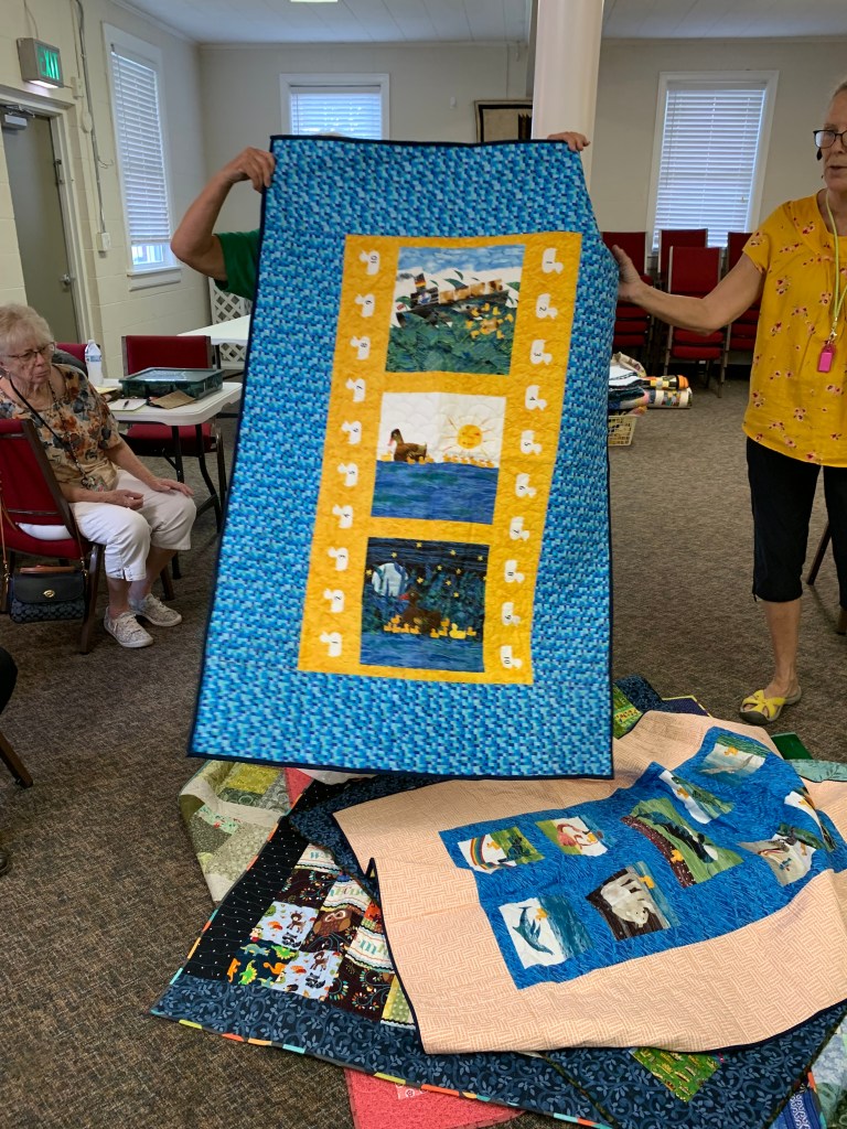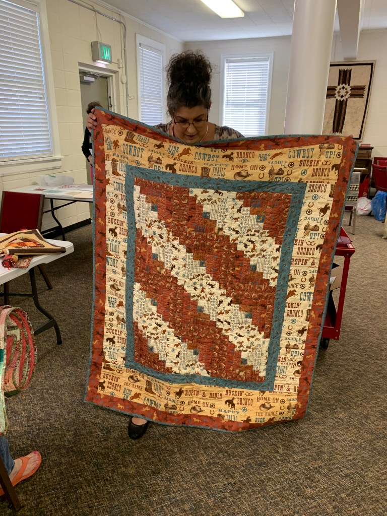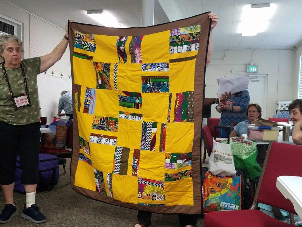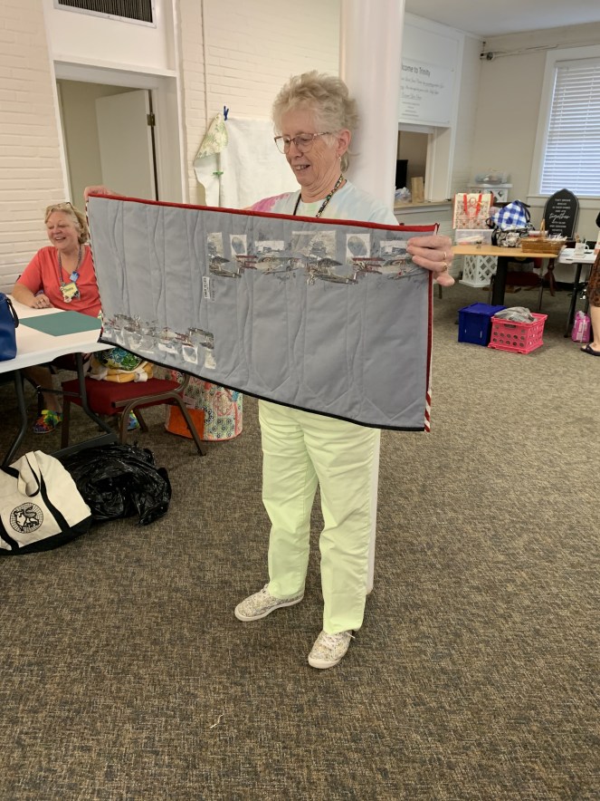 The doors are open at 9AM and we appreciate folks coming then and helping set up. The morning workshop “Mini-class” on Basic Binding techniques starts promptly at 10 AM. I am preparing some small mug rugs for you to complete the binding on after I demonstrate. So far 10 people have signed up. When we finish we will join the others in our sewing morning. Please EVERYONE bring your machine and usual sewing supplies. For the class please bring some clips for the binding if you have them, and some to loan for those who don’t. Also a glue stick will come in handy, and I have also used 1/4″ fusible tape to attach the back of a binding – so bring some if you have it.. A 1/4″ foot for your machine will be best to use if you have it but not critical. The rest of you will be working on finishing stages of donation quilts, and/or making and filling one yard bags. We plan to donate to a shelter in Columbus and to the Crisis Center in Phenix City at our January meeting.