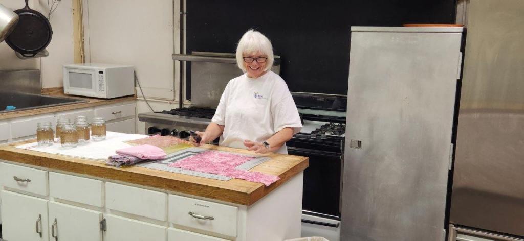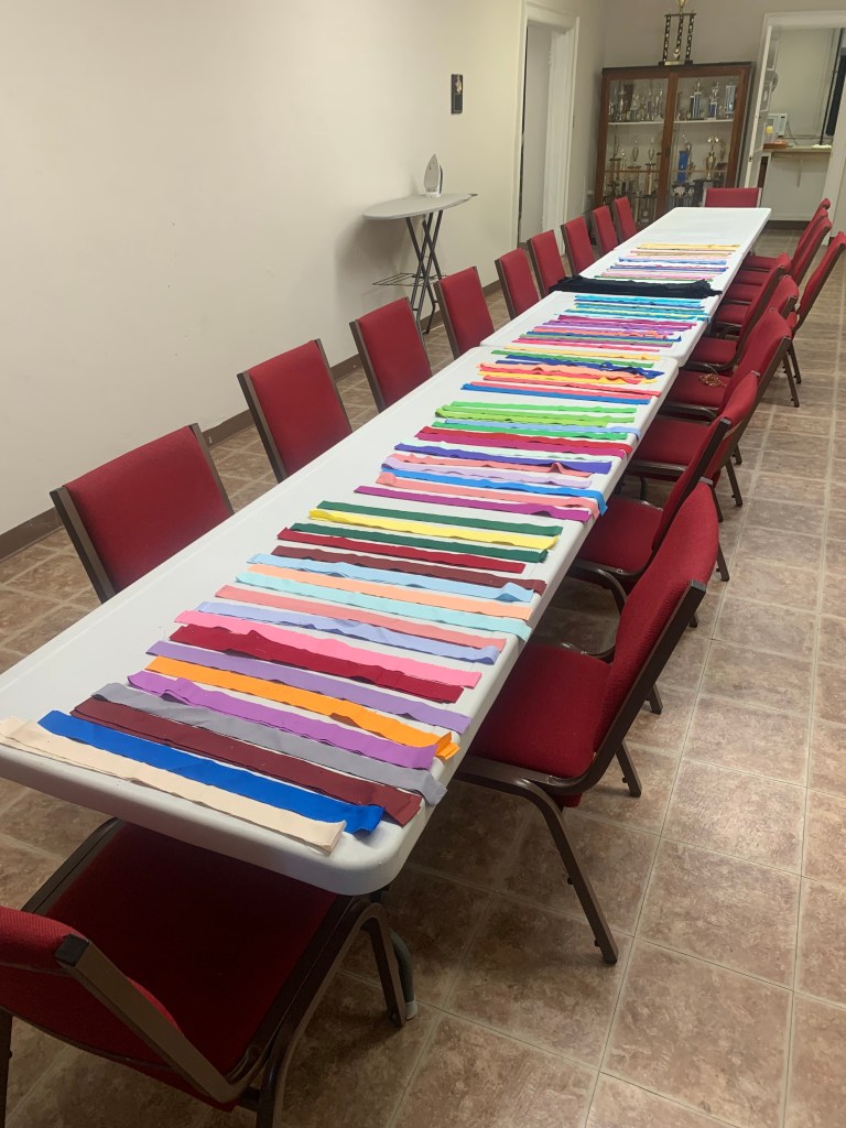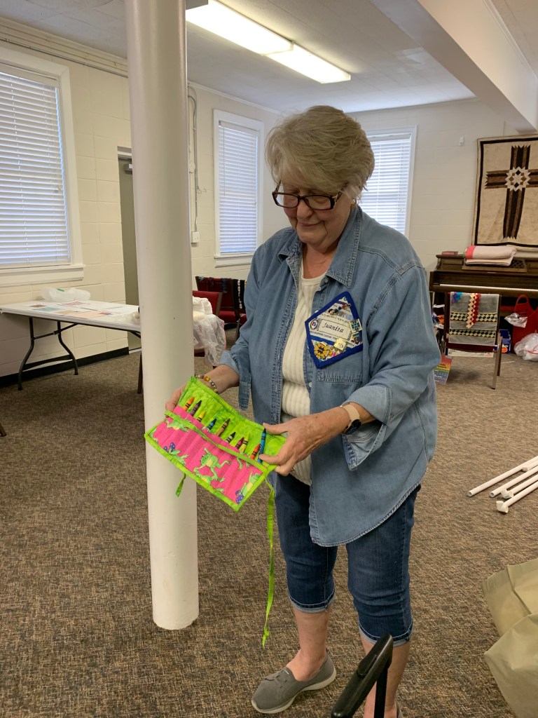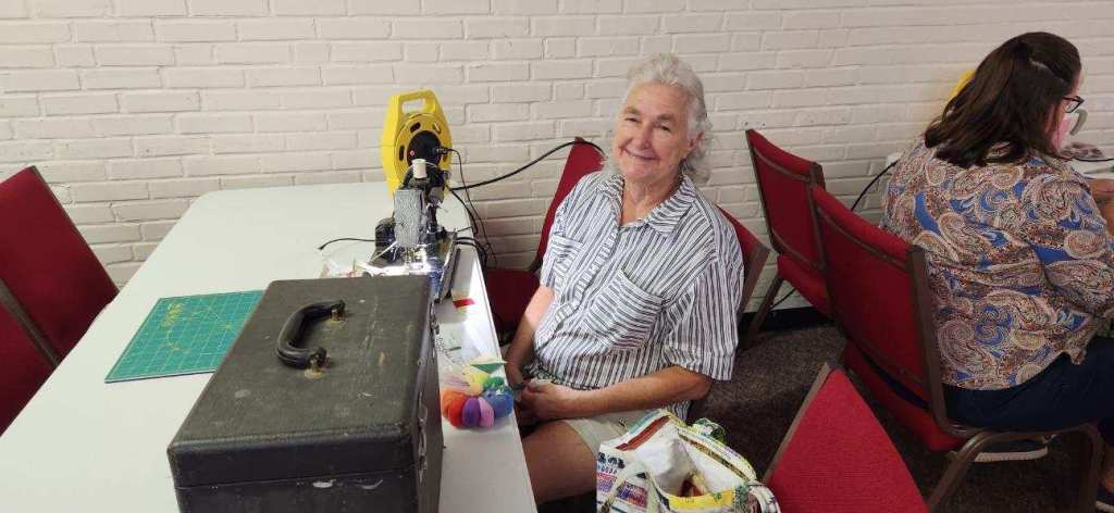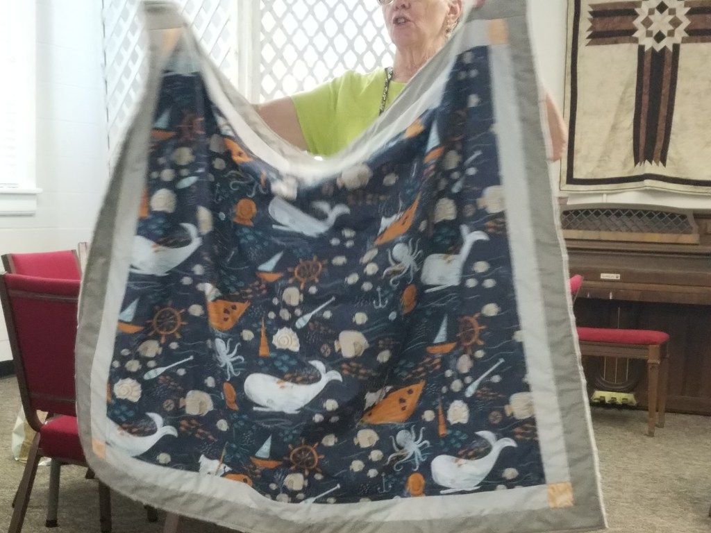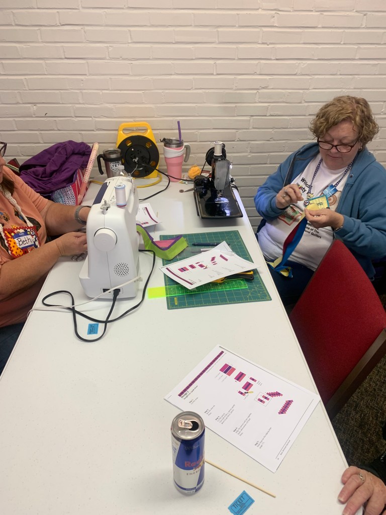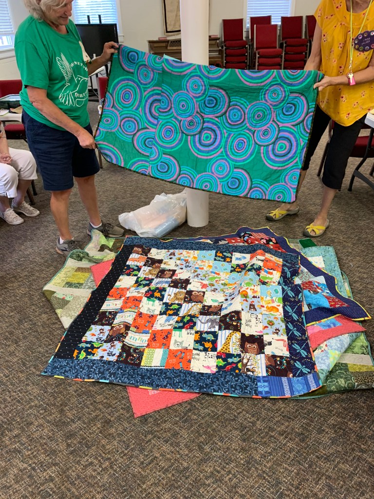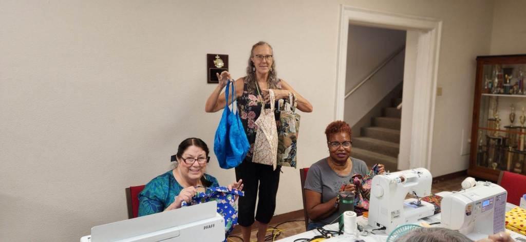 The doors are open at 9AM and we appreciate folks coming then and helping set up. The morning workshop “Mini-class” on Basic Binding techniques starts promptly at 10 AM. I am preparing some small mug rugs for you to complete the binding on after I demonstrate. So far 10 people have signed up. When we finish we will join the others in our sewing morning. Please EVERYONE bring your machine and usual sewing supplies. For the class please bring some clips for the binding if you have them, and some to loan for those who don’t. Also a glue stick will come in handy, and I have also used 1/4″ fusible tape to attach the back of a binding – so bring some if you have it.. A 1/4″ foot for your machine will be best to use if you have it but not critical. The rest of you will be working on finishing stages of donation quilts, and/or making and filling one yard bags. We plan to donate to a shelter in Columbus and to the Crisis Center in Phenix City at our January meeting.