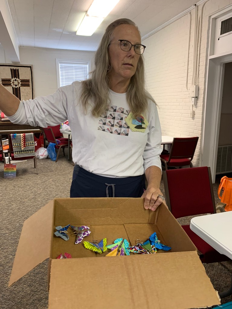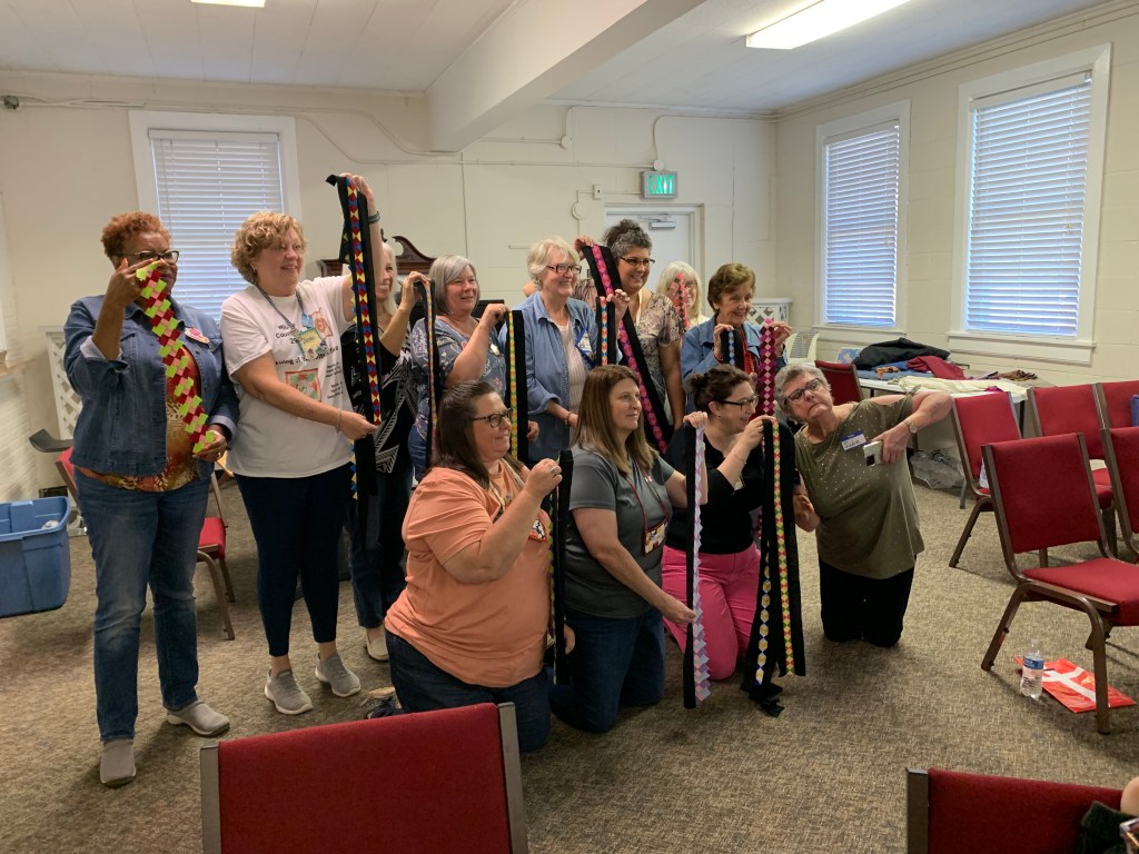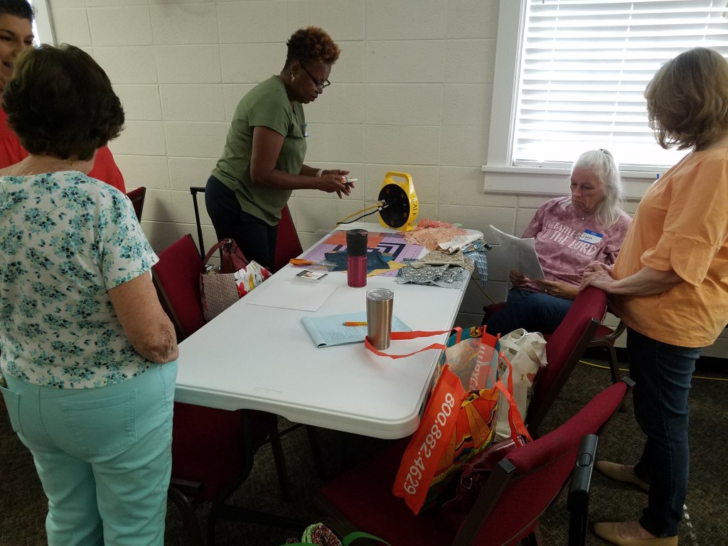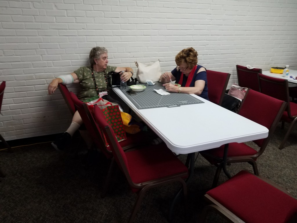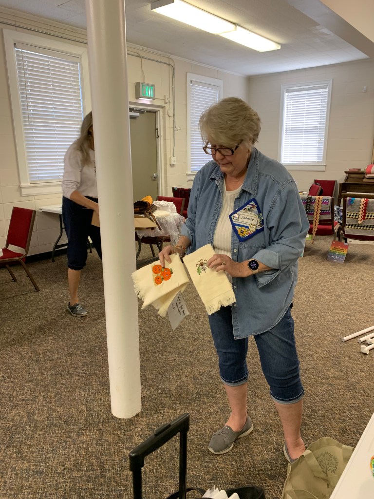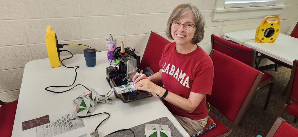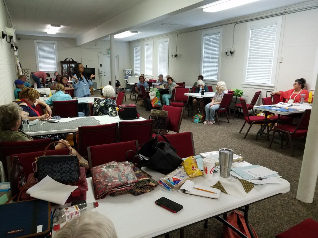 Our next meeting will be on the third Saturday of the month, as always, which is November 19th. And we will meet at Trinity United Methodist Church as always. It is at 1600 5th Ave in Phenix City, but park on the DOWNHILL side on 4th Ave where you see guild signs. Our attendance is ever increasing (yay!) so we ask the able-bodied to drop off their stuff and then move your car to the parking lot at the intersection of 4th Ave and 16th Street. You will up your step count for the day! We now have 60!! members on the roster and we added 5 new names to this email list from people we met at Fort Mitchell last weekend.