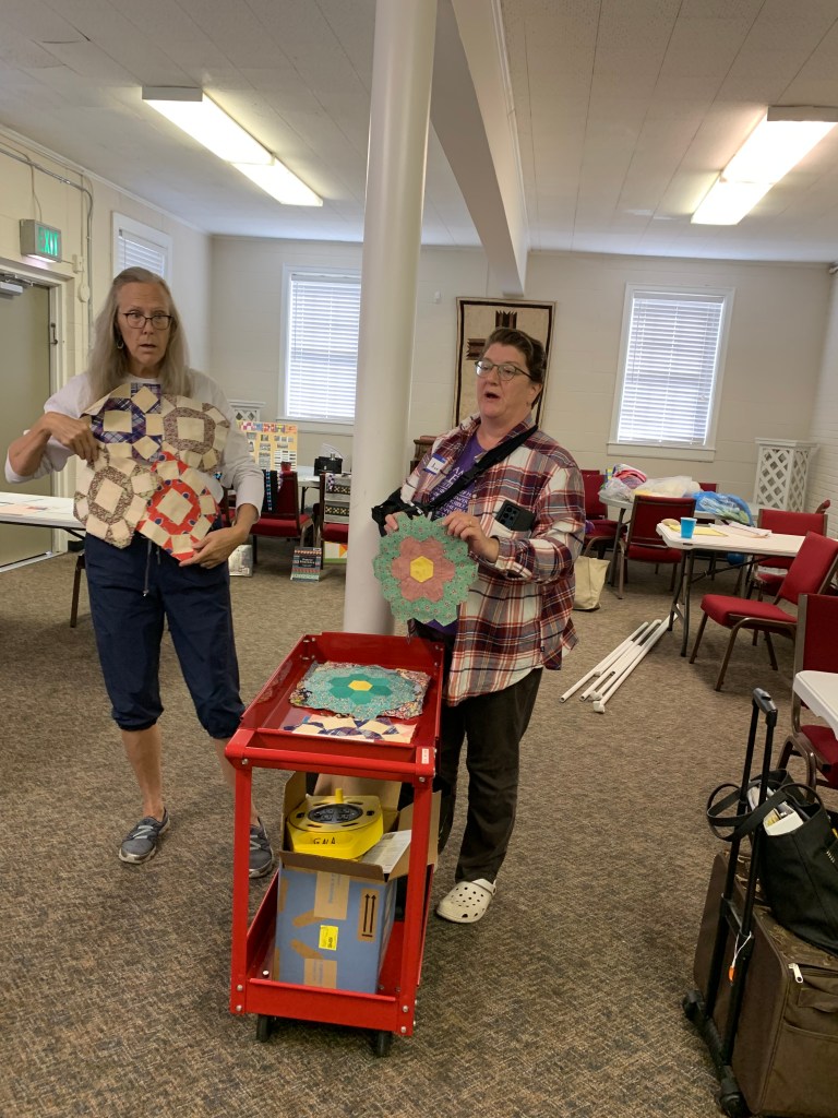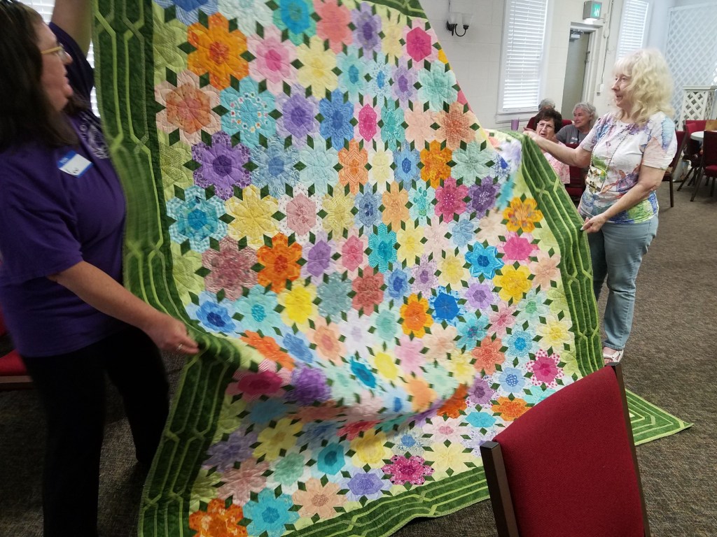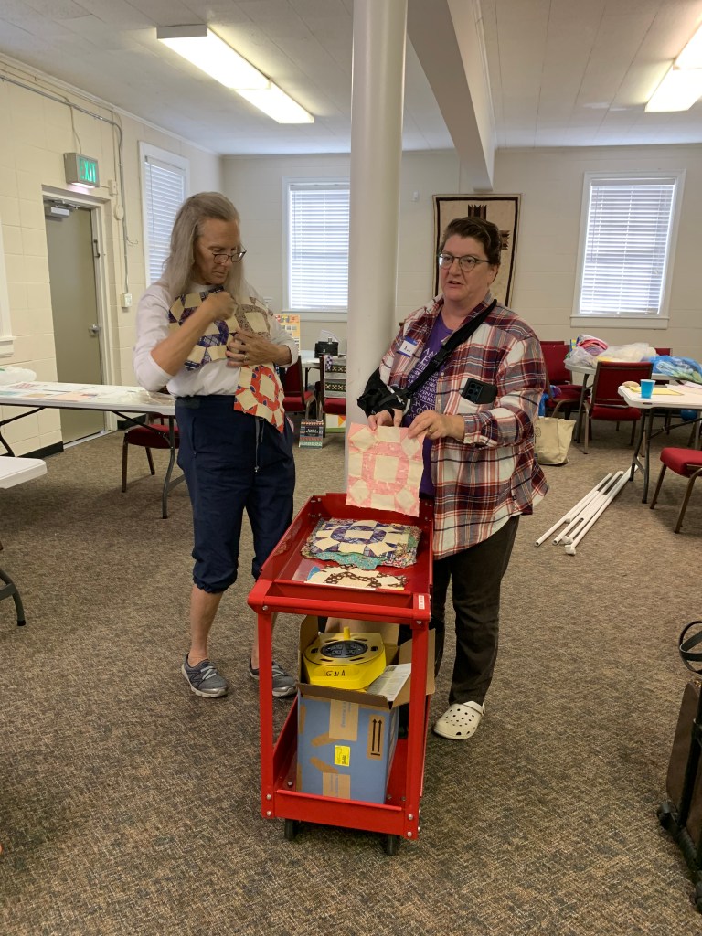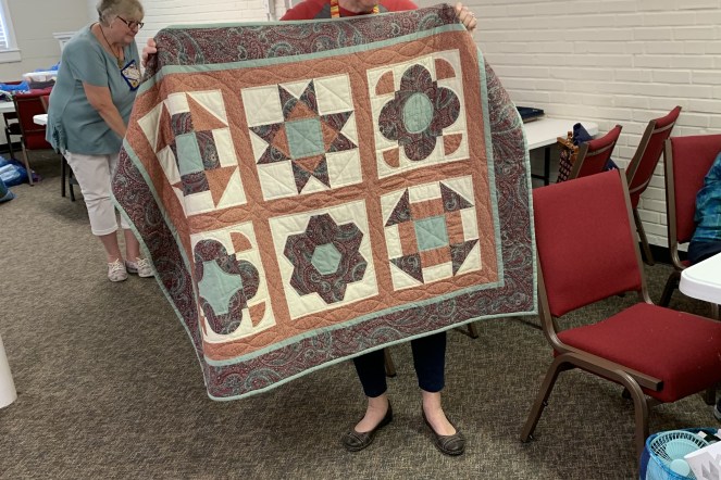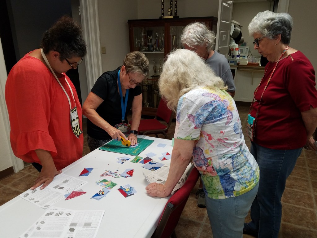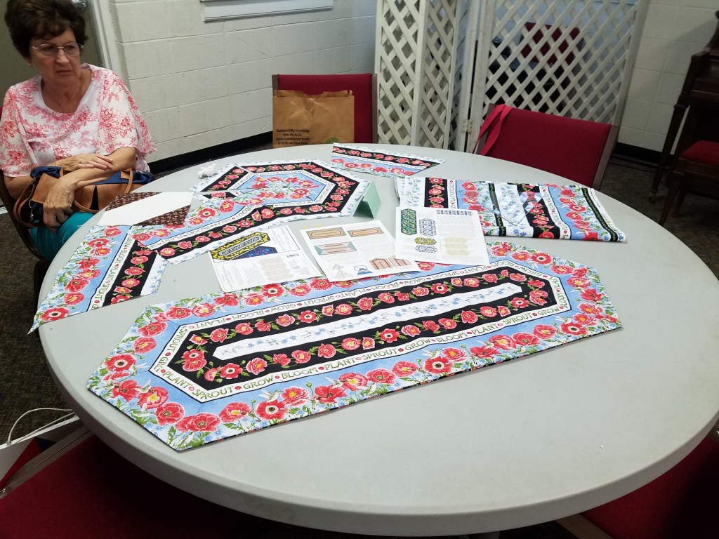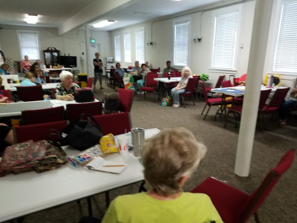 Our afternoon meeting starts at 1:00 with old and new business, announcements and upcoming event review, prizes, Block of The Month, and Show and Tell. New people – you can bring anything quilty or crafty or textiley to show. It could be something you or Grandma made, or that you found or bought, old or new.