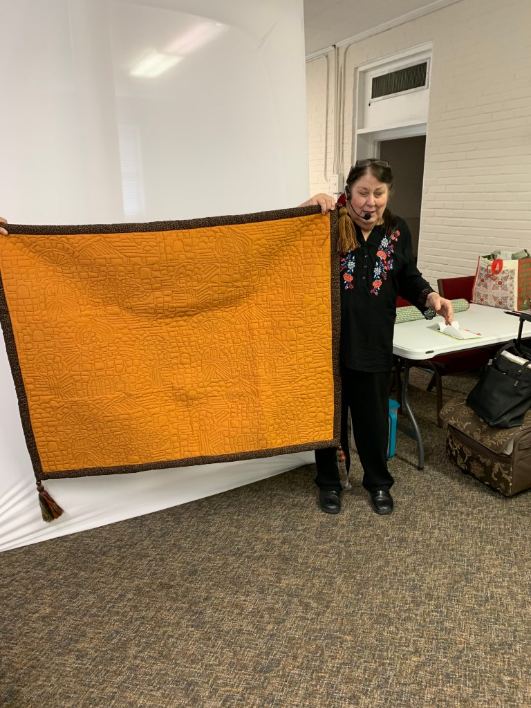 Please note December is a little different schedule. We open up at 11:00 – no workshop in the morning- and set up for a potluck lunch at noon. Please bring something to share – salad, side, snack, sweets, protein – you know the drill. The guild is going to provide ham – but no green eggs – haha! We will only discuss any business that we absolutely have to, and do a brief BOM, prizes, and Show and Tell.